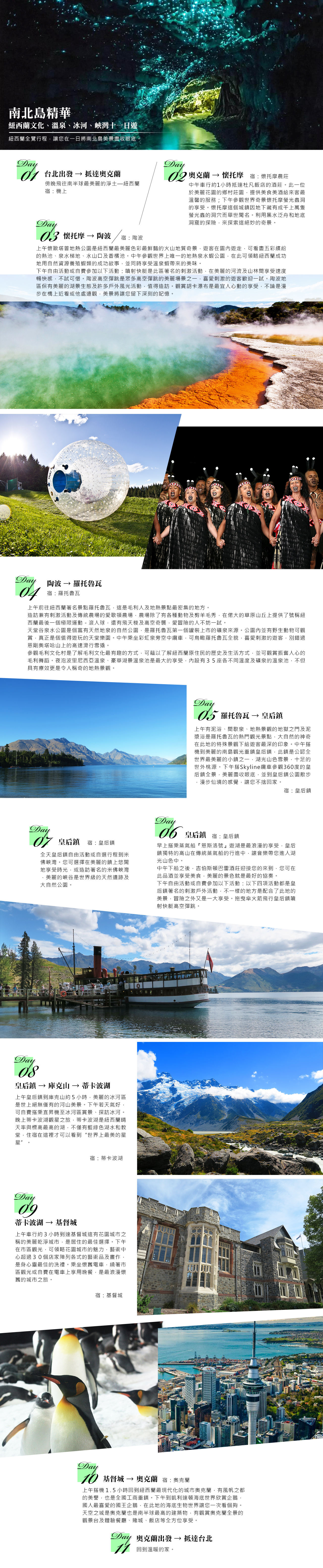 紐西蘭文化、溫泉、冰河、峽灣十一日南北島精華遊