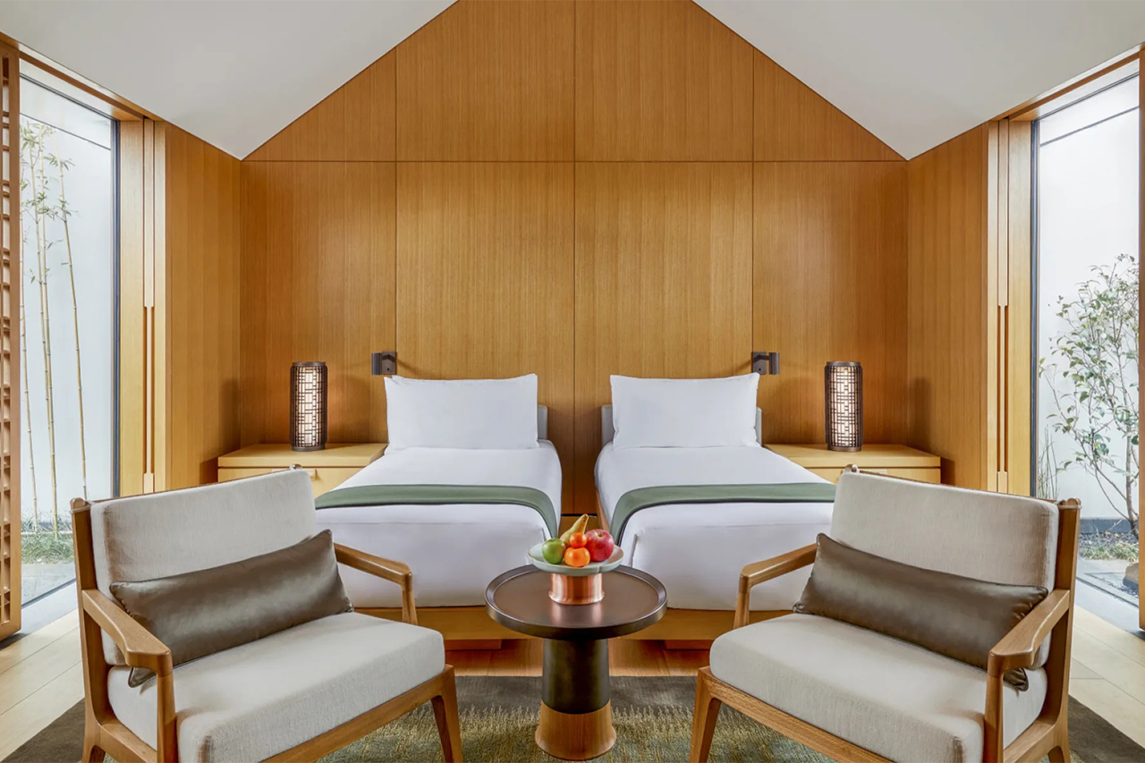 與明.客居相比更為寬敞,坐落於新建廂房之中,在香樟古木環繞下悠享現代居住體驗