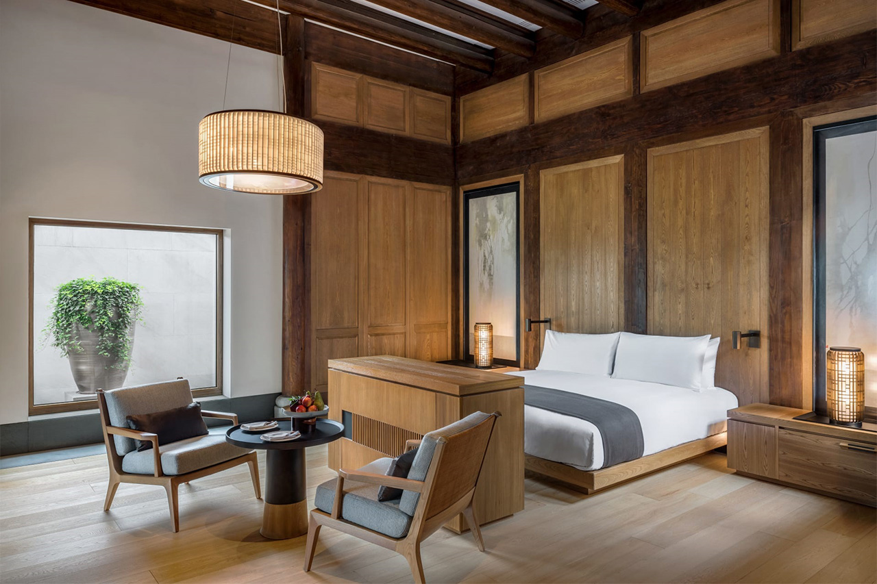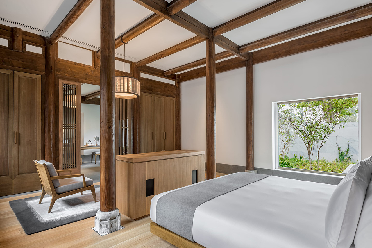 坐落於古宅之中的古風臥室和其位於四周新建廂房的三間臥室一起,構成了古宅四臥典雅別緻的居住環境