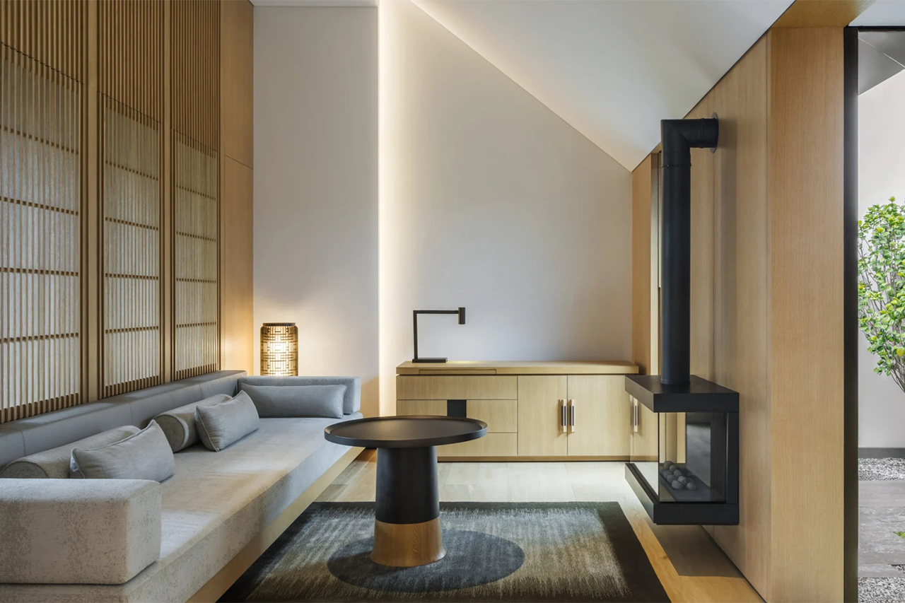 安放於祥和的樹林中,創造出一種舒適的古與新的平衡,與打造一座靜謐村莊的理念相契合。