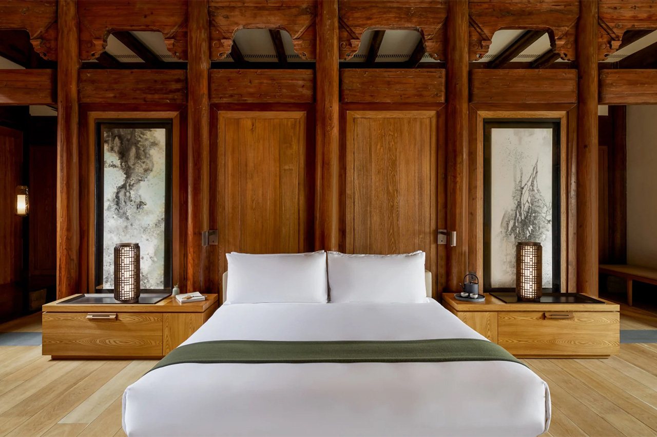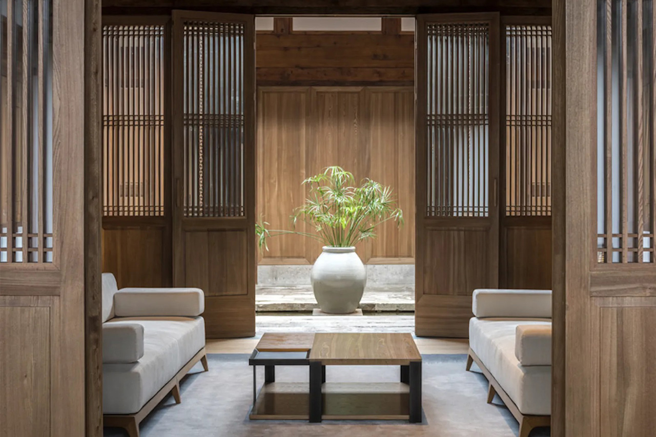 養雲安縵是一種現代居住舒適性、傳統文化與美觀的融合,被保護下來的明代與清代民居,每一塊古老的石磚都被重新整理並組合,構建出這塊安寧而雅緻的空間。樟樹林寧靜而祥和,投映出充足的光線,與使用木頭、石頭與竹子完成的室內空間相呼應。