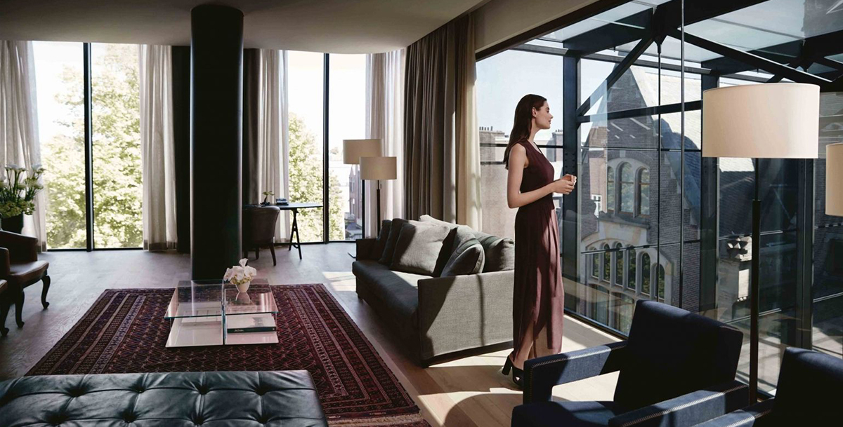 頂層公寓式至尊套房則是四面都是落地窗,可以俯瞰康塞維托瑞姆酒店這座歷史悠久建築的外觀並欣賞阿姆斯特丹及更遠處的美景。