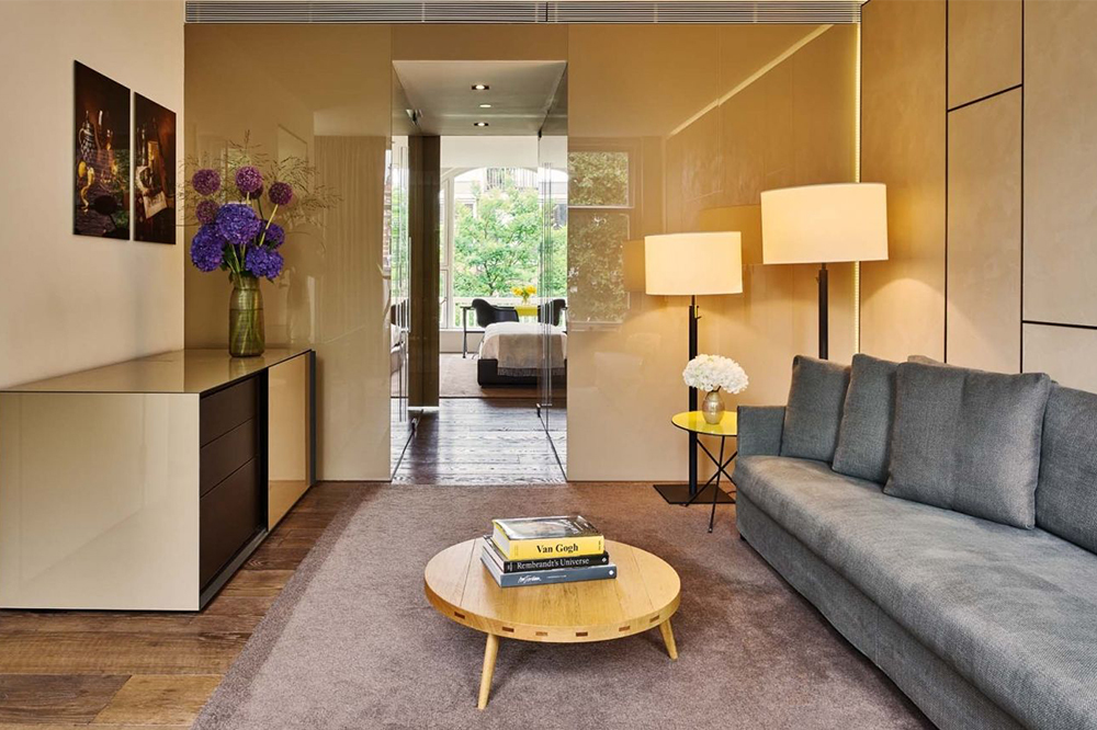 豪華小型套房可以飽覽阿姆斯特丹的美景,俯瞰庭院、休息室或 Paulus Potterstraat。面積約為16坪。精選豪華小型套房為多層(兩層),其他豪華小型套房均為單層。