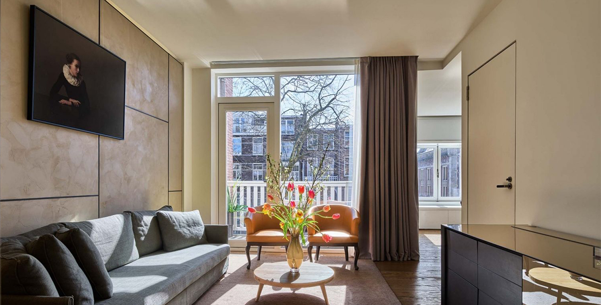 該套房專為尋求真正的阿姆斯特丹體驗的賓客設計,模擬城市中的經典聯排別墅,適合家庭或在阿姆斯特丹長時間居留的賓客。雙臥室套房的大小約為37坪,配有小陽台,可俯瞰阿姆斯特丹舉世聞名的現代藝術博物館阿姆斯特丹市立博物館。