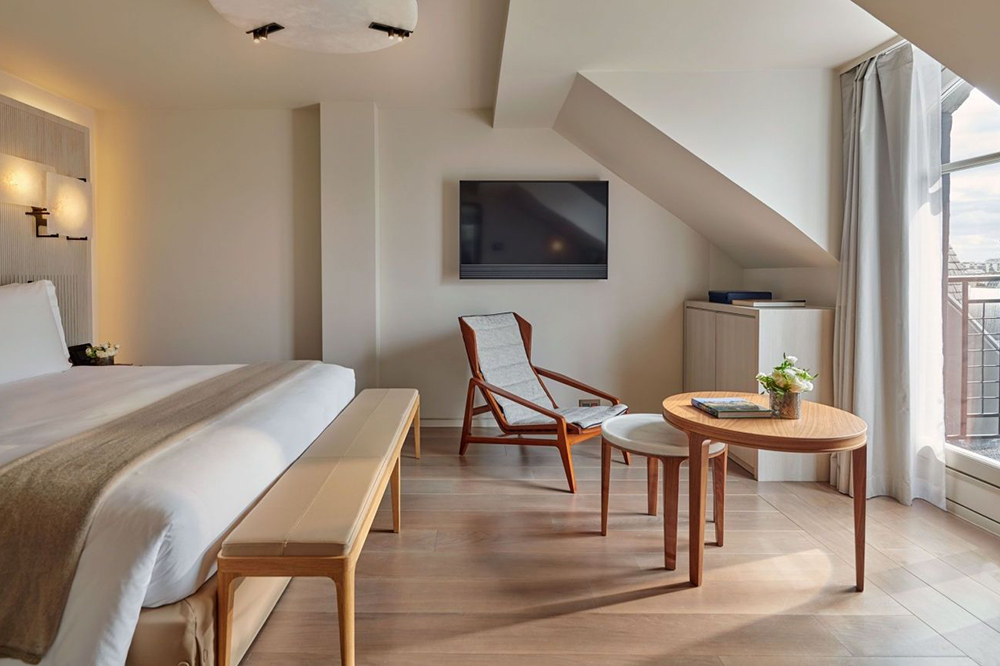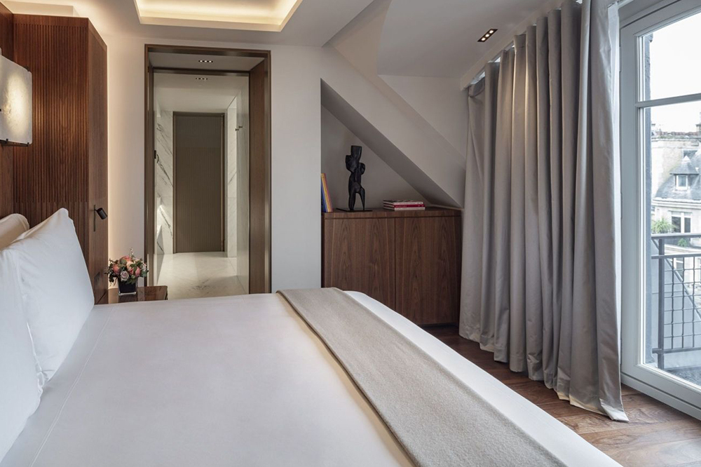 客房無處不彰顯考究雅緻的氣質和令人驚喜的創意設計。典雅的佈局和設計細節由著名建築師 Jean-Michel Wilmotte 一手打造。從鑲嵌橡木的書房到陽光明媚的餐廳、奢華的主臥和手工鑲貼的浴室,每間房間均配備有包括由 Wilmotte 親自設計的知名品牌的當代家具。灑滿陽光的內部空間兩側裝有寬大的窗戶,是娛樂放鬆或躲避喧鬧人群的理想之所。