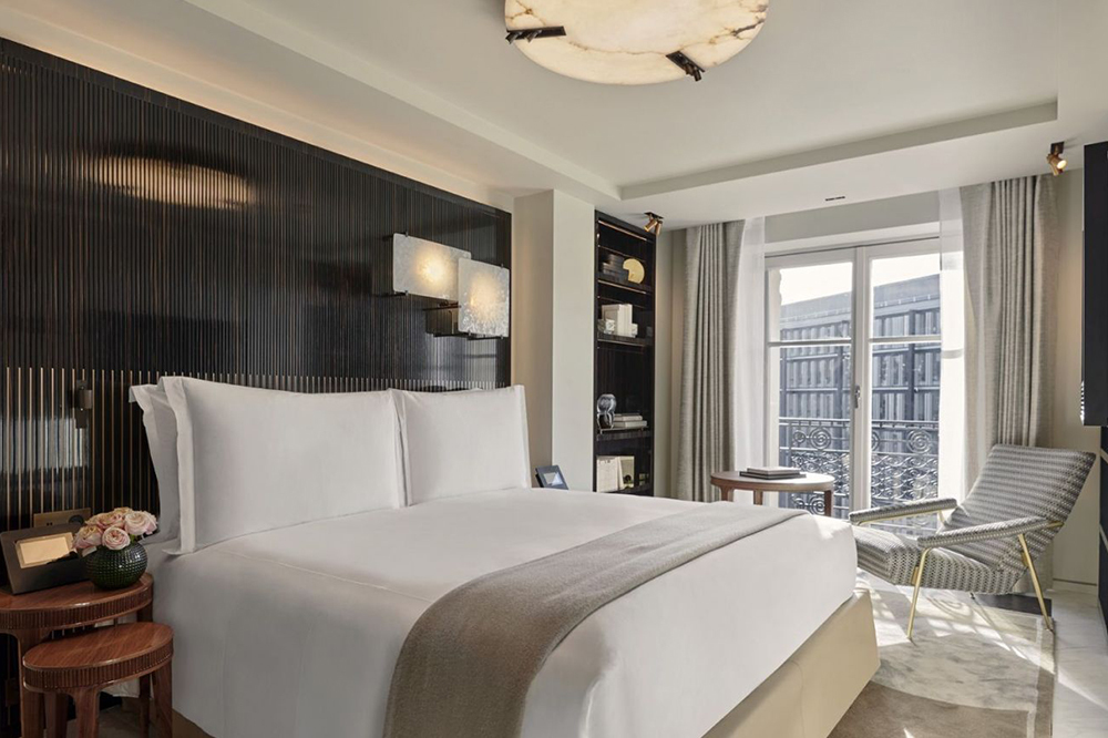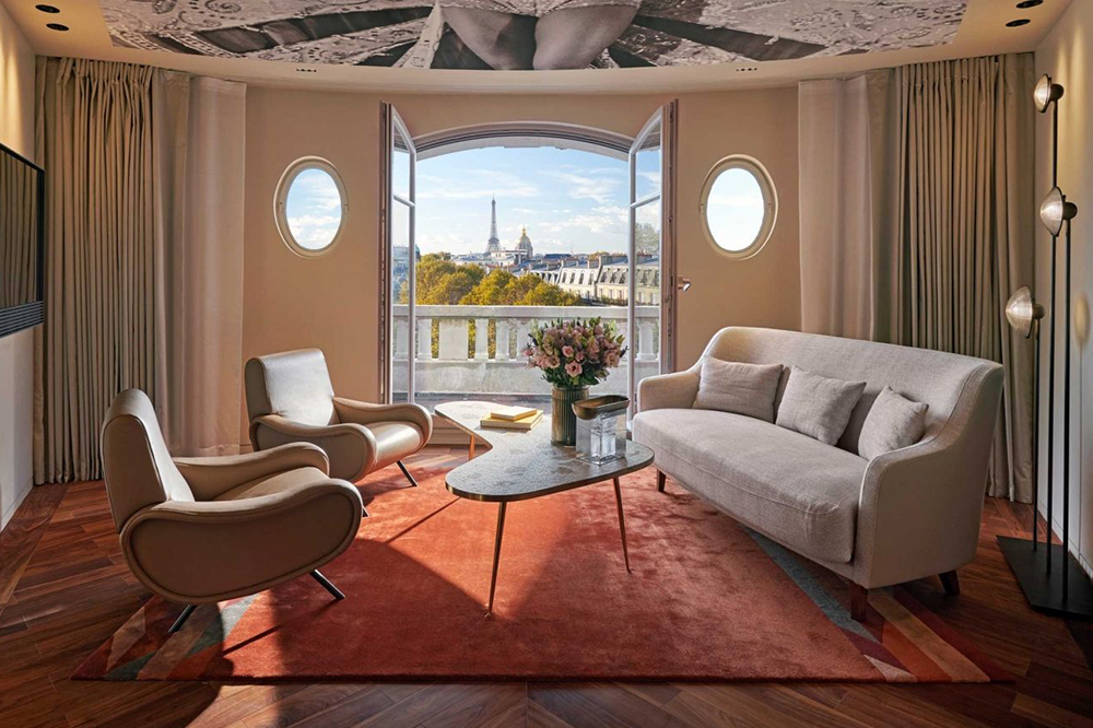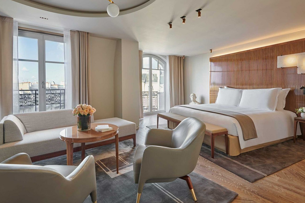 設計靈感源自巴黎富有傳奇色彩而又聞名遐邇的時裝界,裝潢考究卻絕不拘束。套房設有可容納四位賓客就座的陽台、獨立起居室、用餐區域以及一間客用洗手間,是在這座引領全球時裝業的城市內舉行私密聚會或收集靈感、享受私人時光的理想之選。