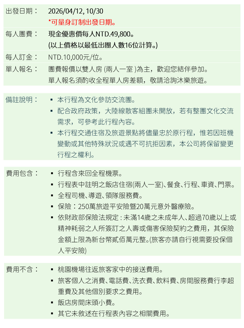 📅 出發日期|2026/4/12, 10/30