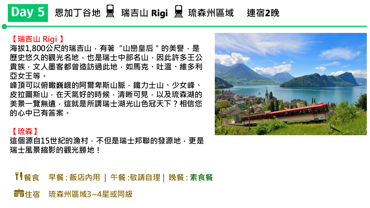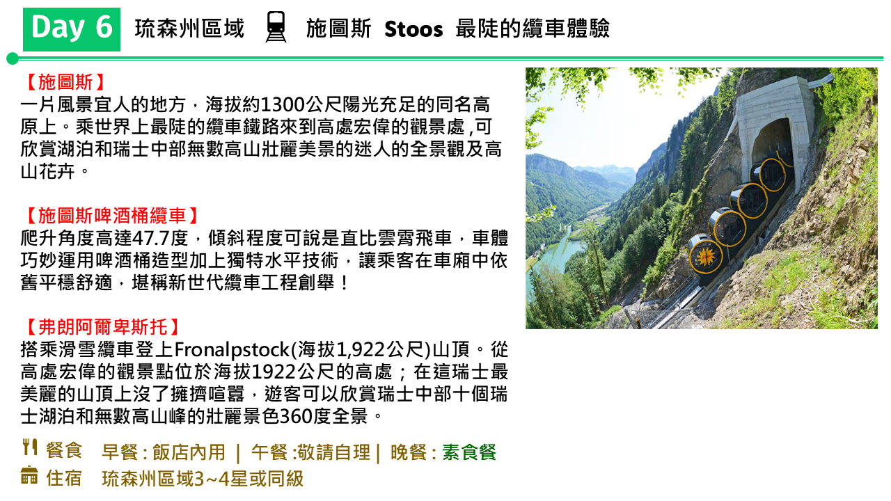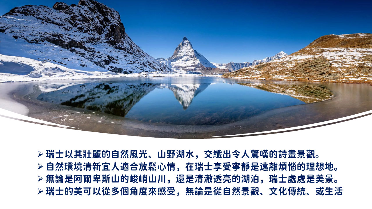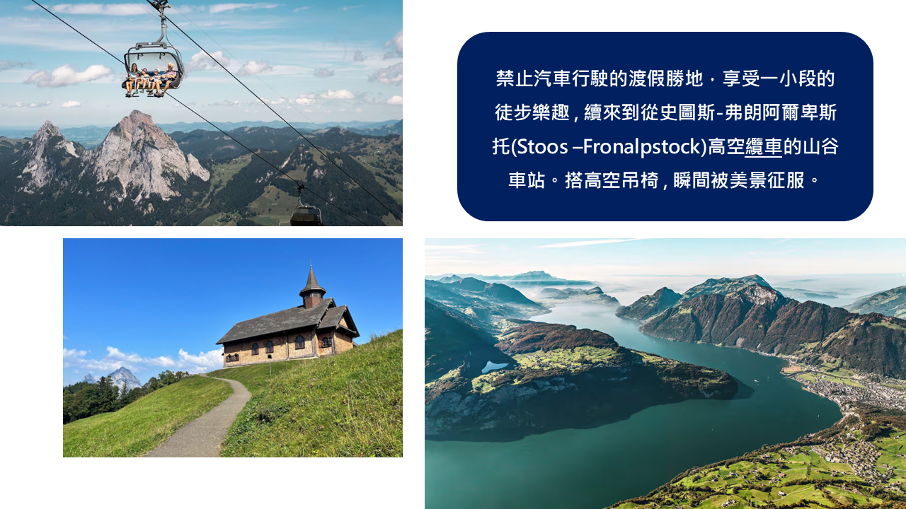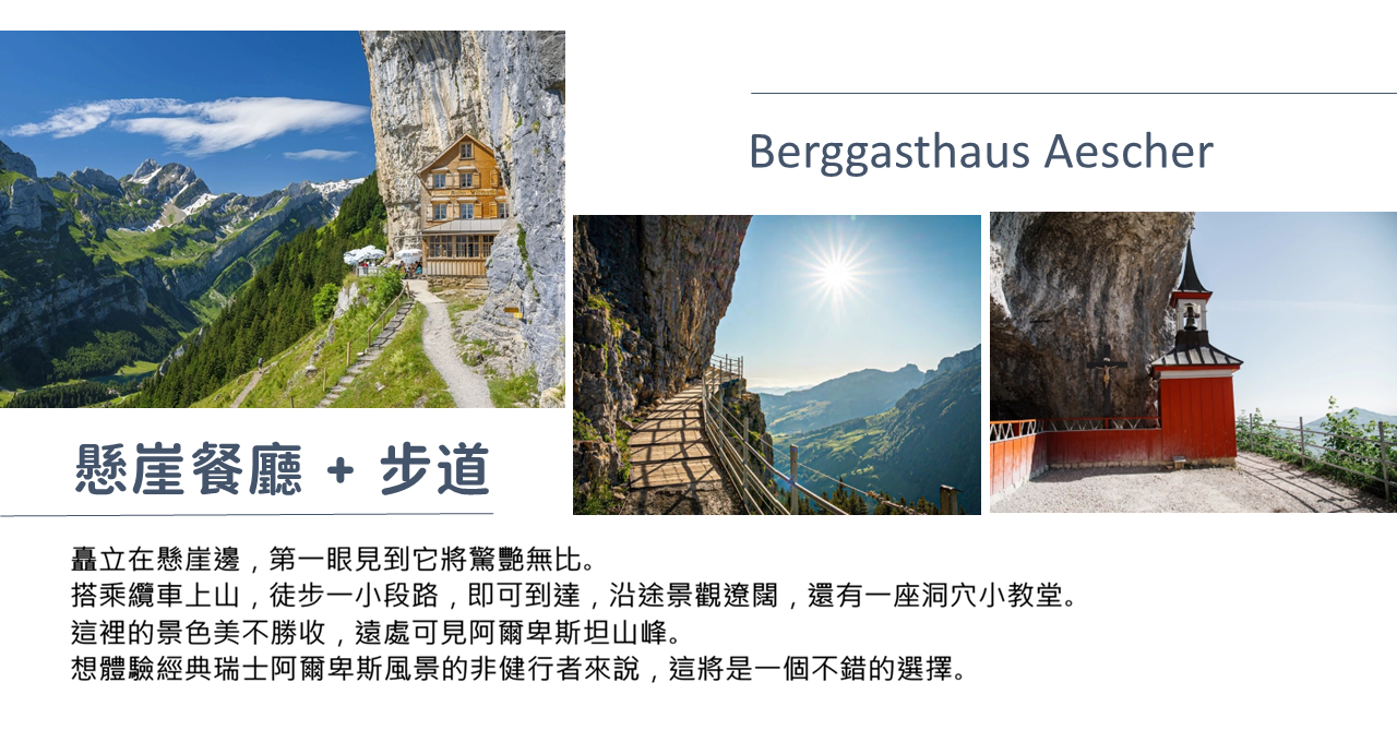 旅途中,我們還會在高山湖畔輕健行、在鄉間小鎮慢步調,呼吸瑞士最純淨空氣。