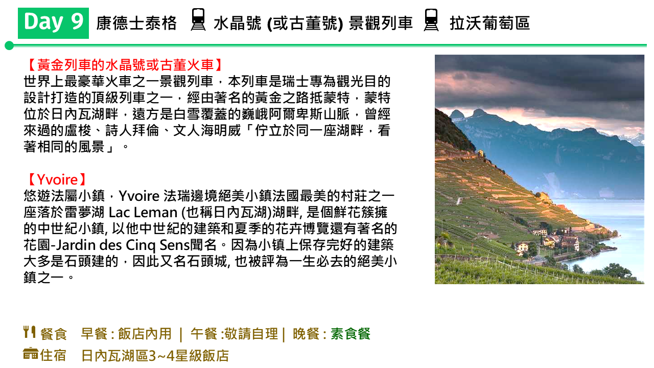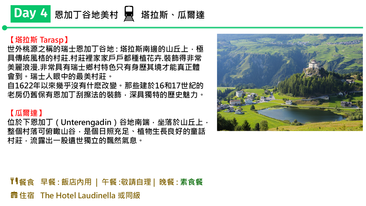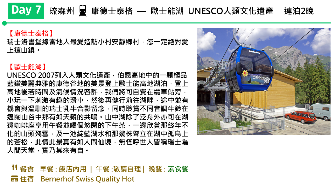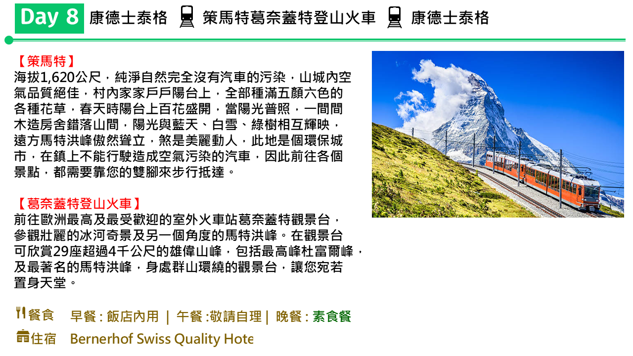 旅途中,我們還會在高山湖畔輕健行、在鄉間小鎮慢步調,呼吸瑞士最純淨空氣。
