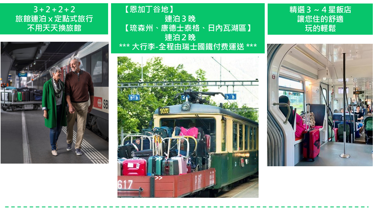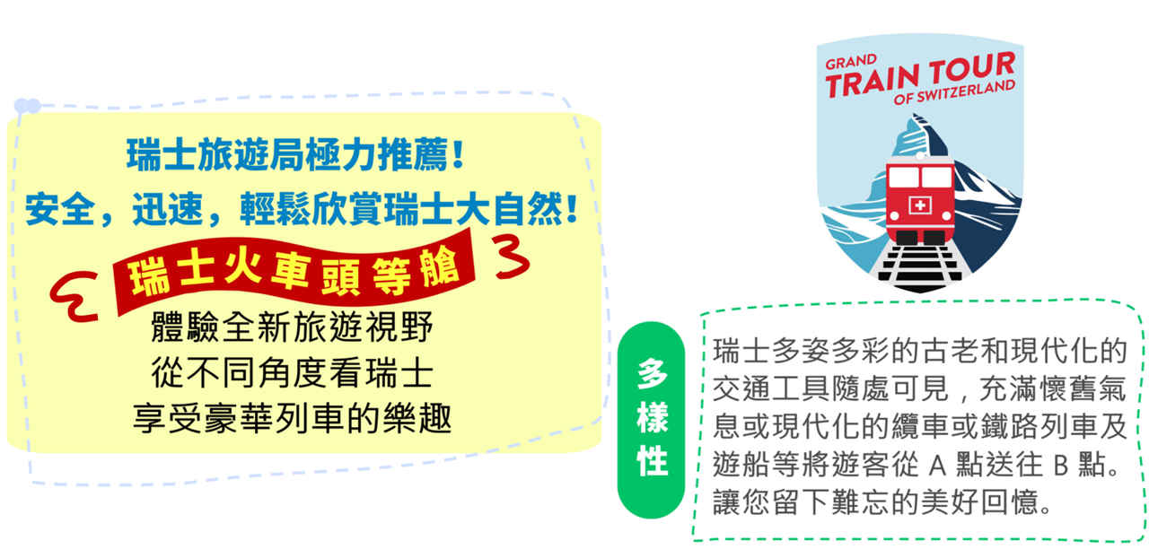 搭乘瑞士火車趴趴走,展開一場輕鬆慢旅與美景相隨的旅行。