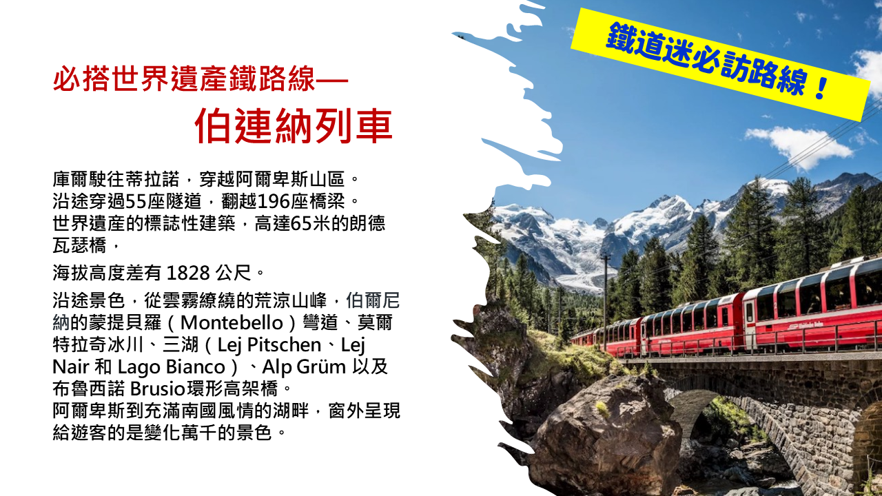 ✔️體驗世界遺產伯連那列車的鐵道奇景
