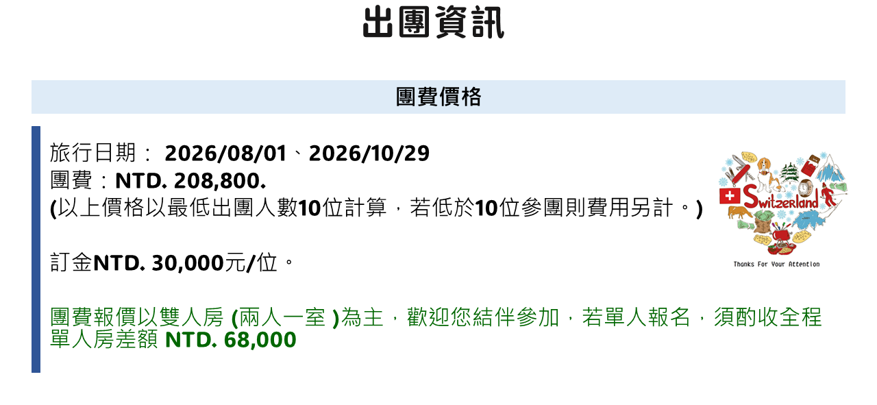 📆出團日期: 2026/8/01, 10/29 * 期間限定