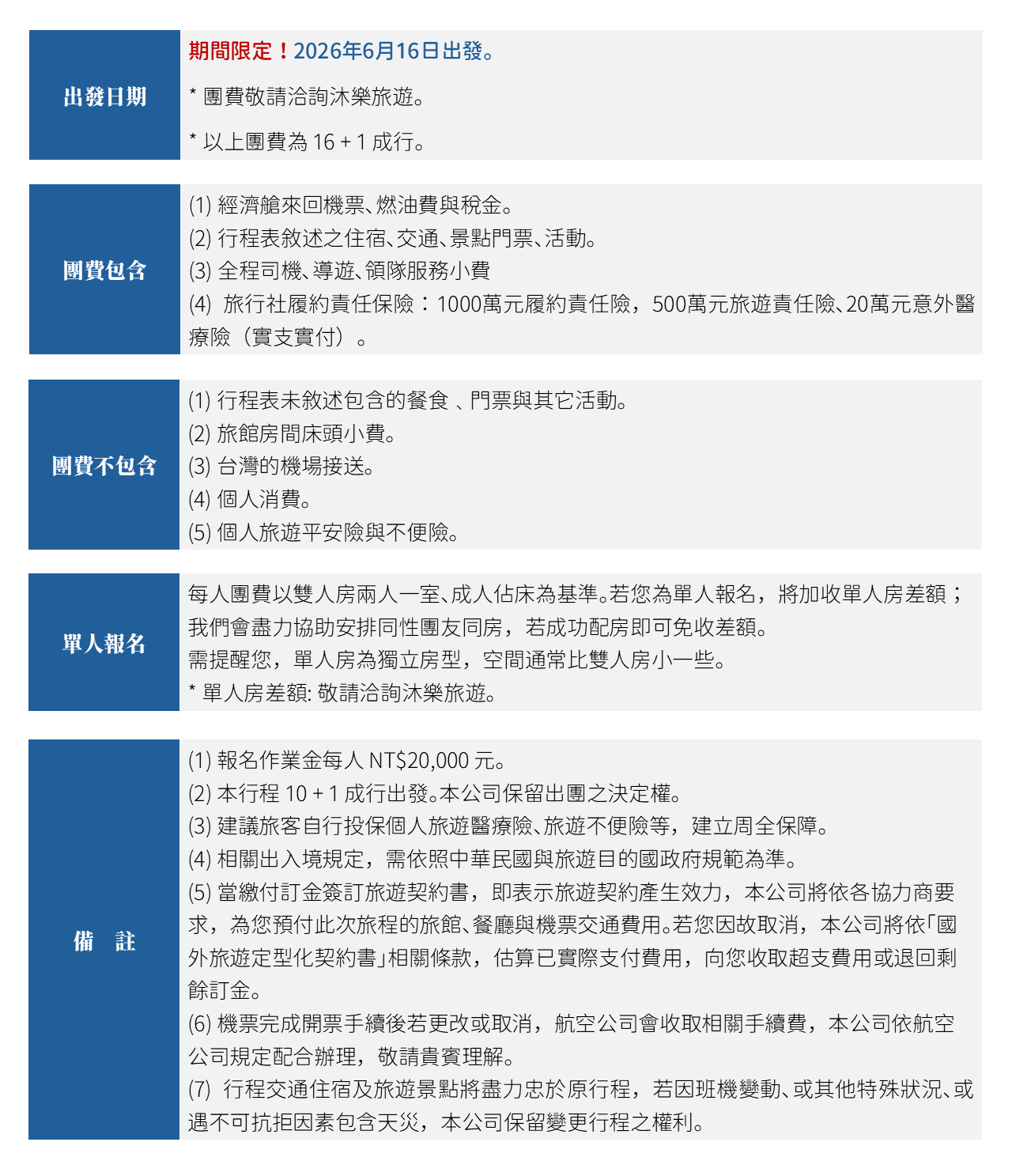 📅 出發日期|2026年6月16日(報名中)
