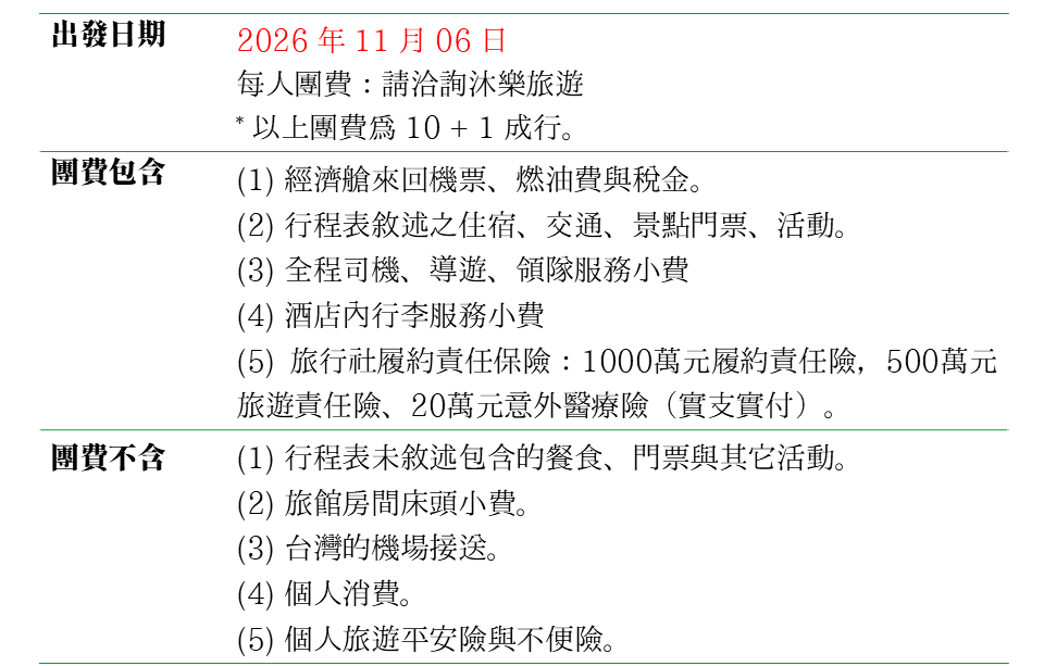 📅出發日期|2026年11月06日
