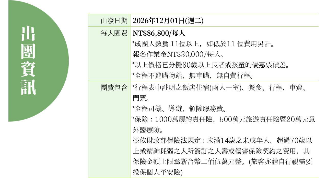 🏷️配合政府政策,大陸線散客組團未開放,若有整團文化交流需求,可參考此行程內容。