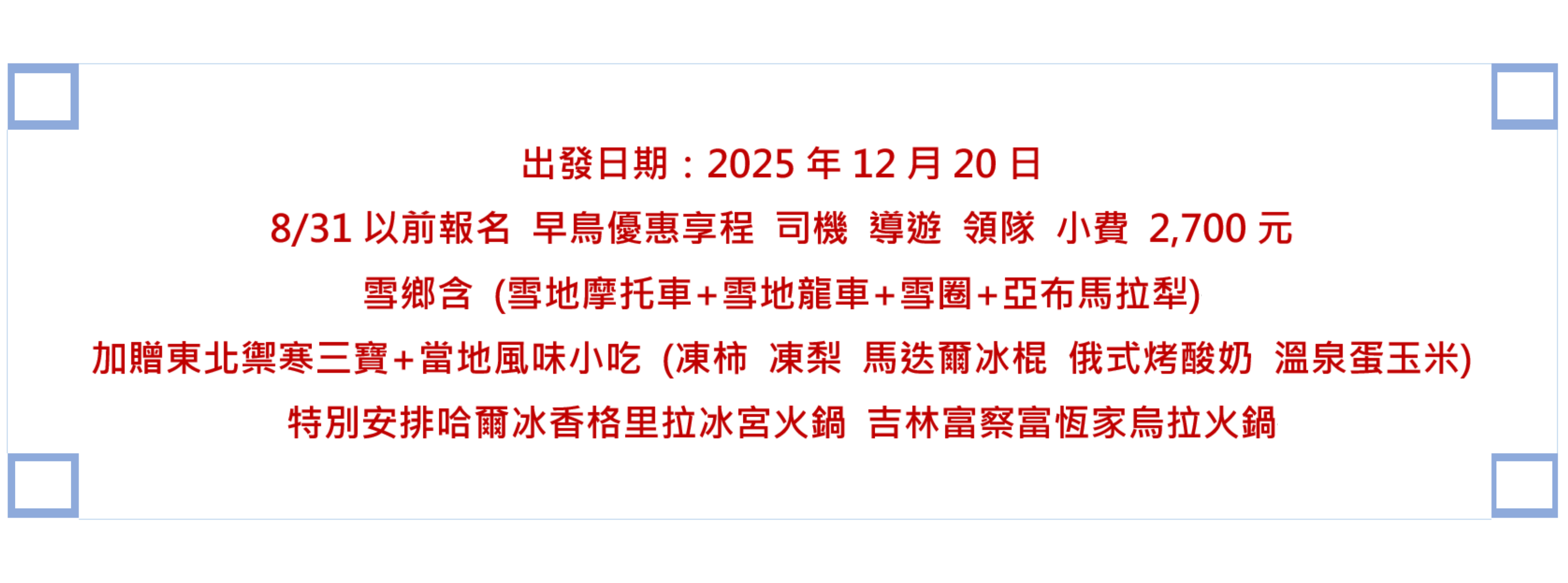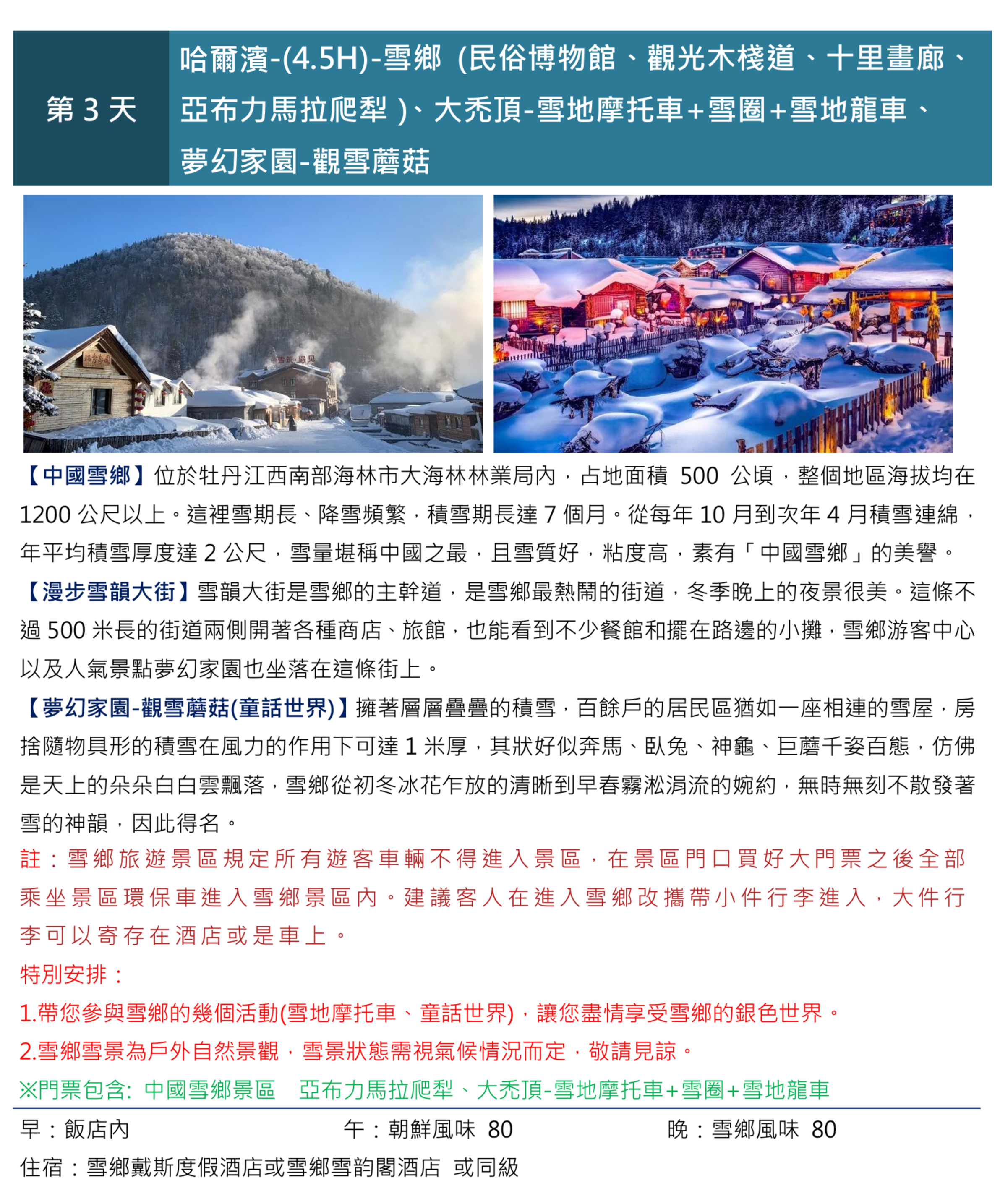 加碼贈送東北禦寒三寶+當地風味小吃。