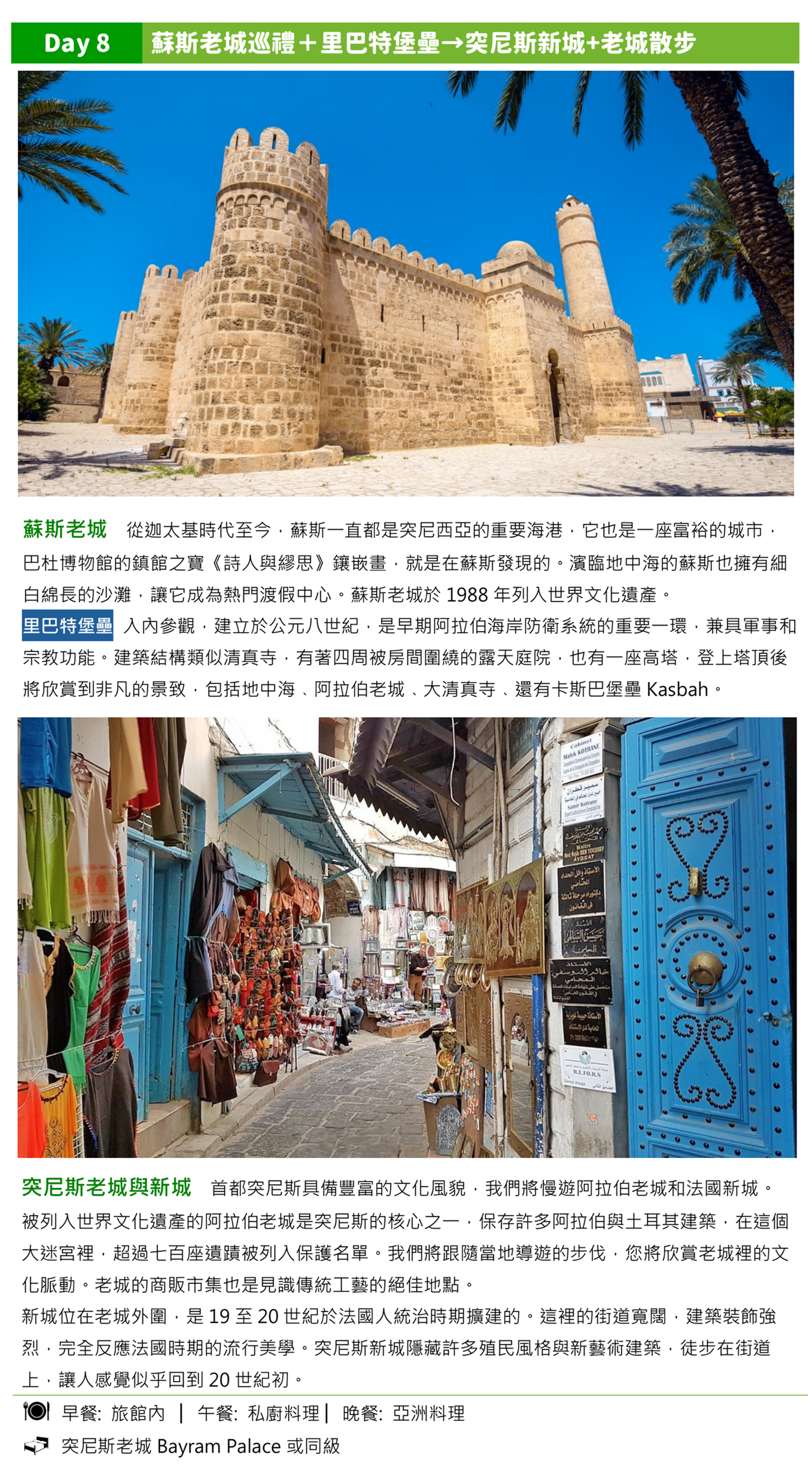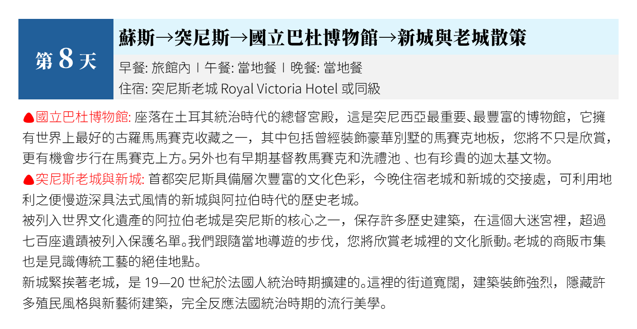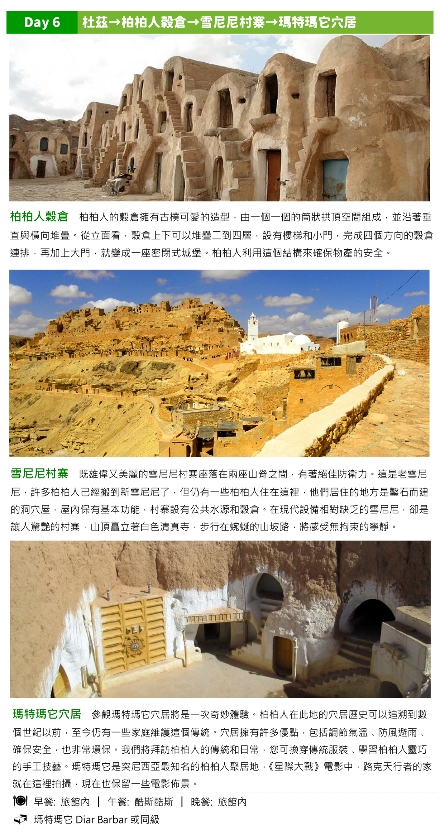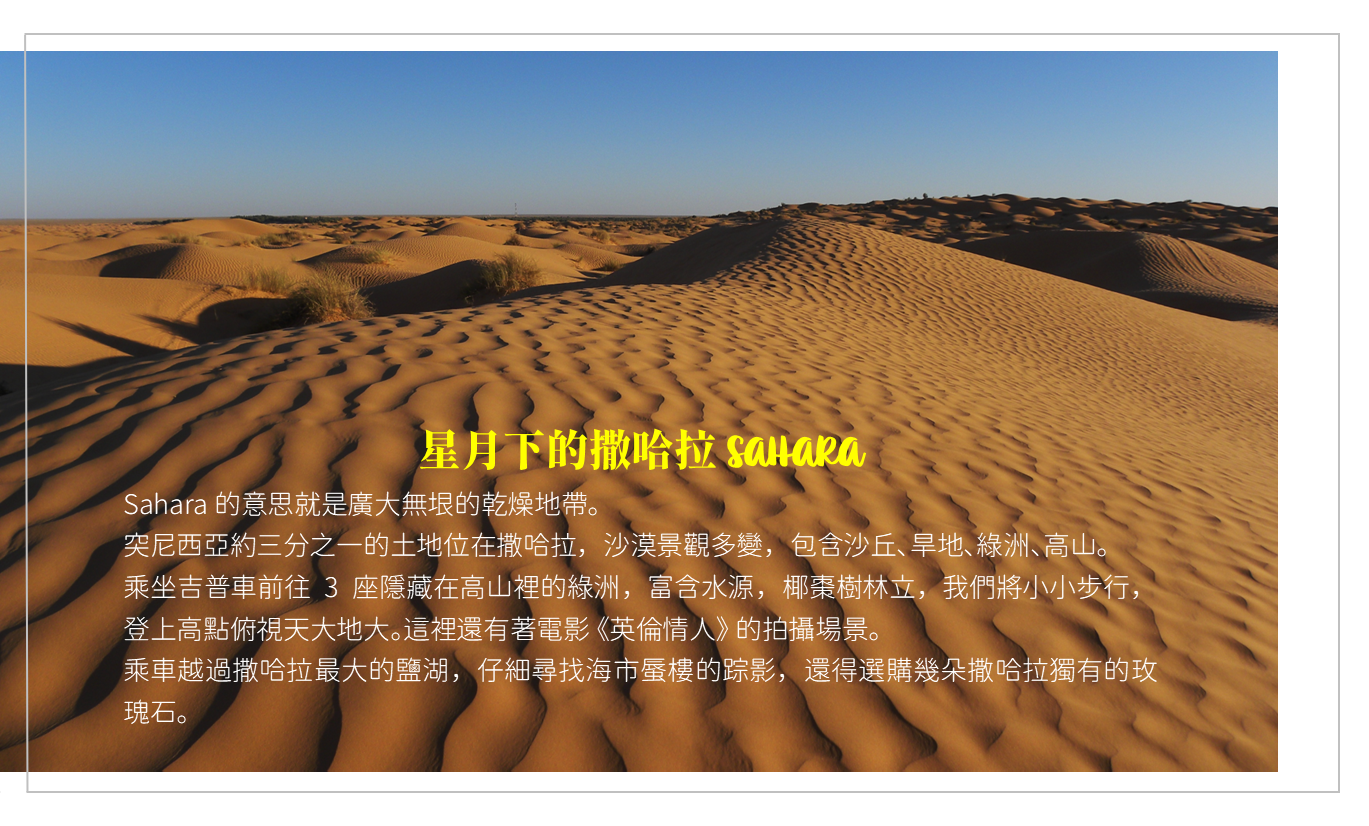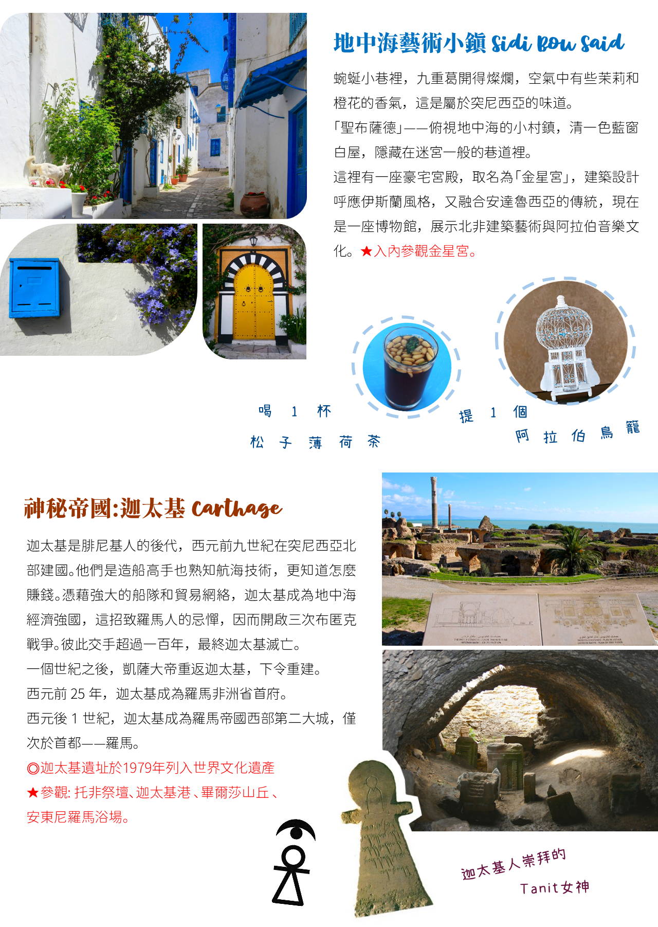 10天旅程,走訪突尼西亞的世界遺產、地中海小鎮、撒哈拉沙丘、還有在地柏柏人的古錐建築。